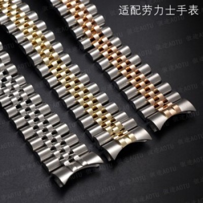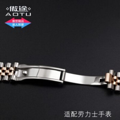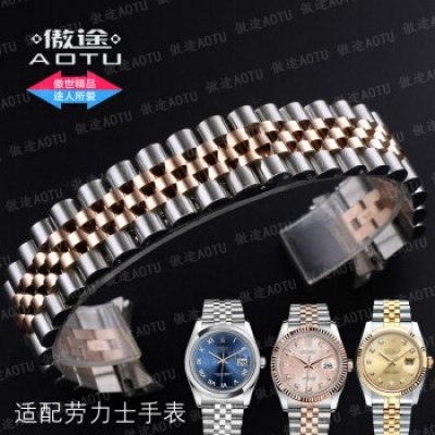 傲途劳力士实心钢带表带 男士精钢手表带 钢表带男不锈钢表链配件 劳力士日志18K金包金表链手表表带 间玫瑰金色 接口宽带20MM